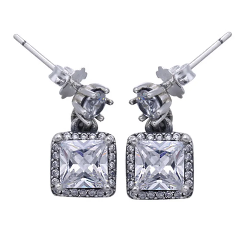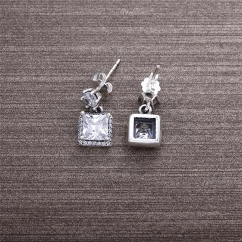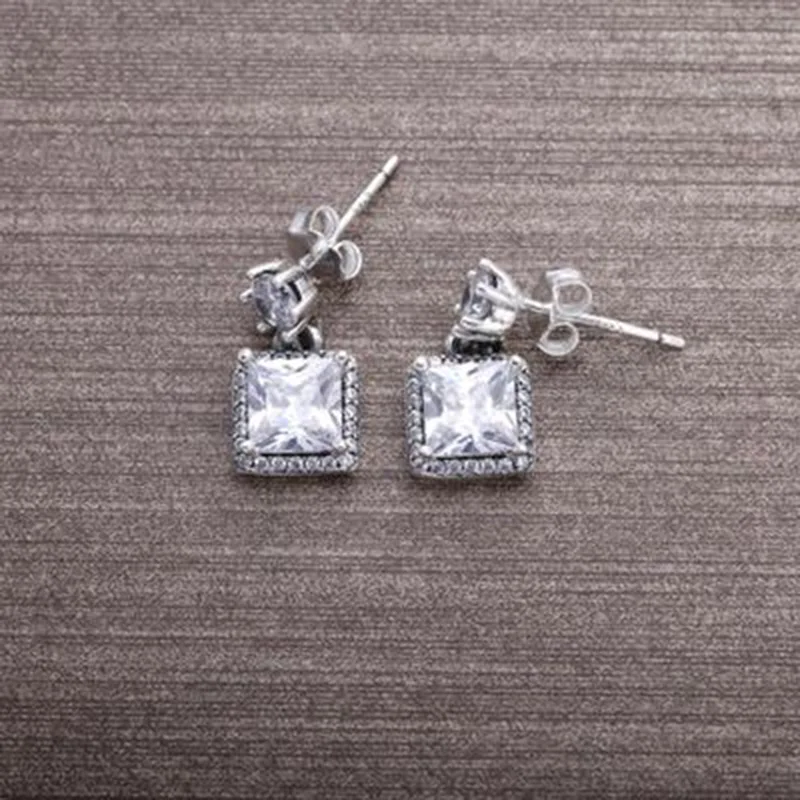 BEST Genuine 925 Sterling Silver Earrings Square Big Zircon Stud Earrings For Women Wedding Jewelry Brin