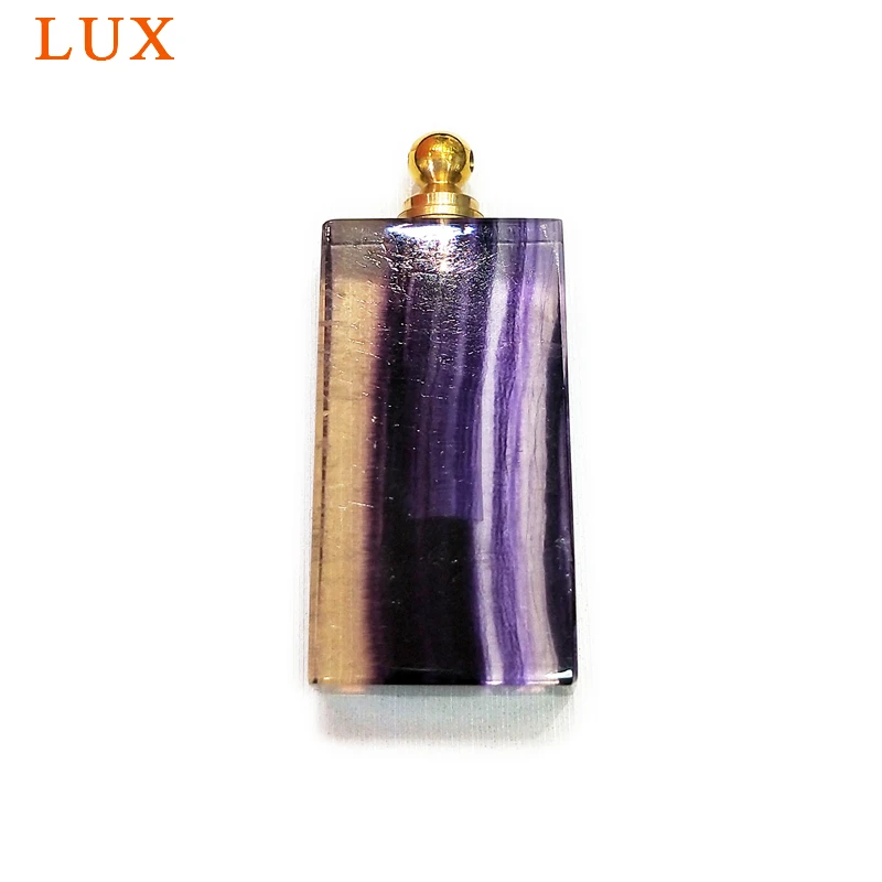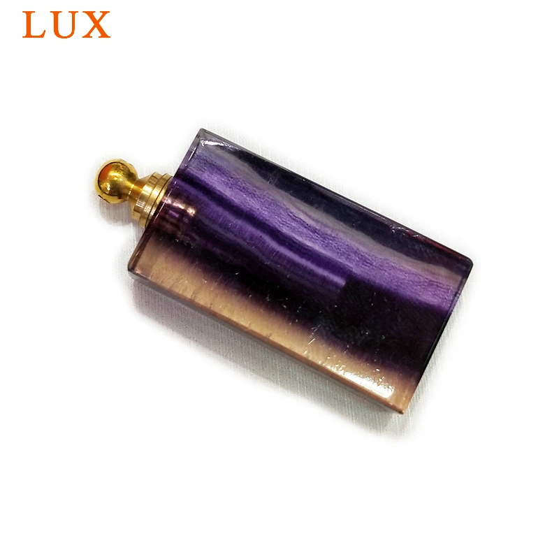 BEST Hand Carved Rainbow Fluorite Potion Perfume Bottle rectangle natural gems stone pendant Essential o