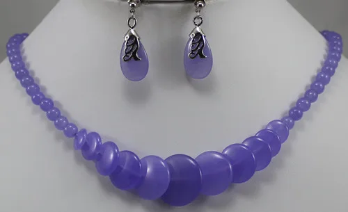 BEST Prett Lovely Women's Wedding wholesale simple style 8mm 18" purple beads and coins necklace & stud