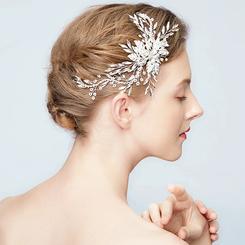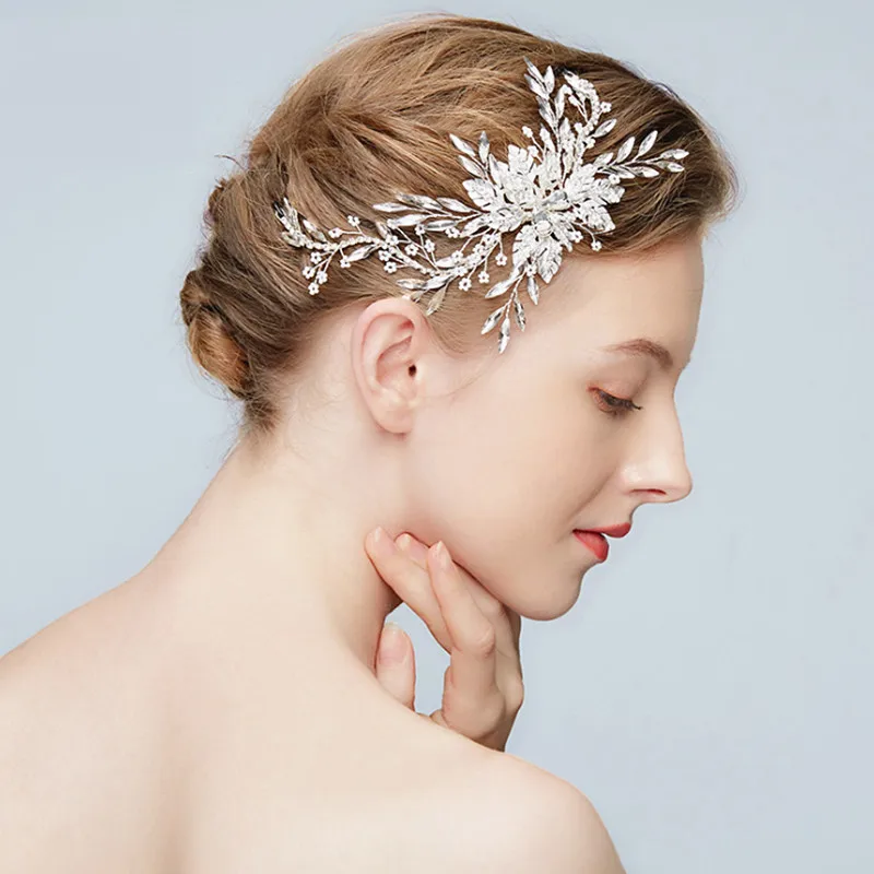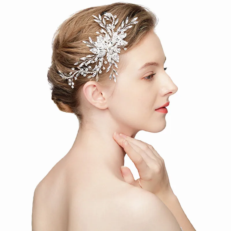 BEST SELLER 2019 New Exquisite Leaf Handmade Bride Jewelry Silver Crystal Rhinestones Pearls Headpiece Hair Cli