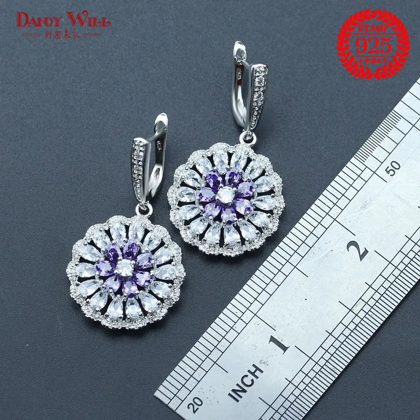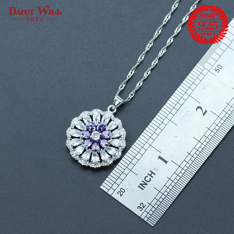 925 Sterling Silver Bridal Jewelry Purple Cubic Zirconia White Zircon Jewelry Sets For Women Earrin