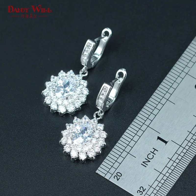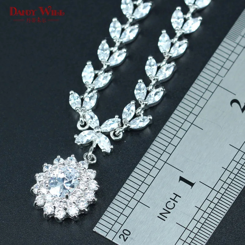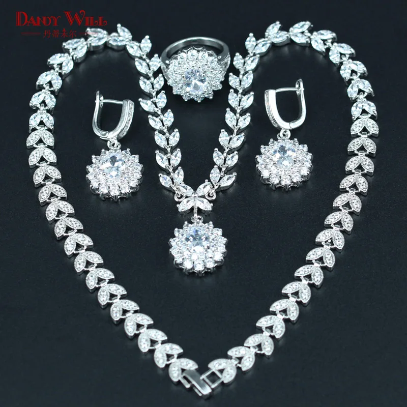 DANDY WILL Luxury Bridal Jewelry Set For Women White Rhinestone Silver color Pendant/Necklace/Earri
