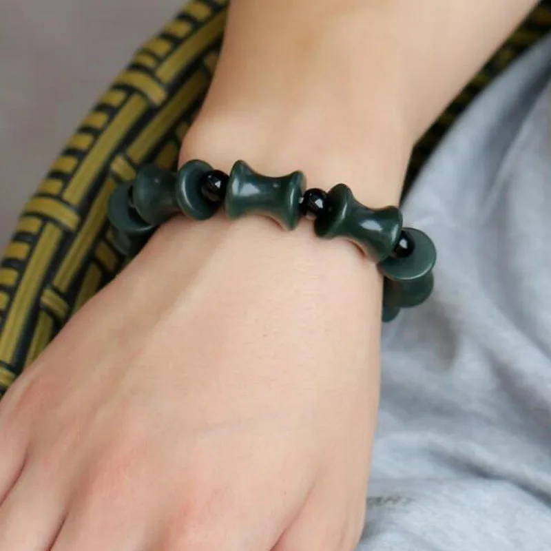 Best Quality Fine Jewelry Natural HETIAN Qing yu Bracelets Carved Bracelets brave amulet Bangles Gift for Men's
