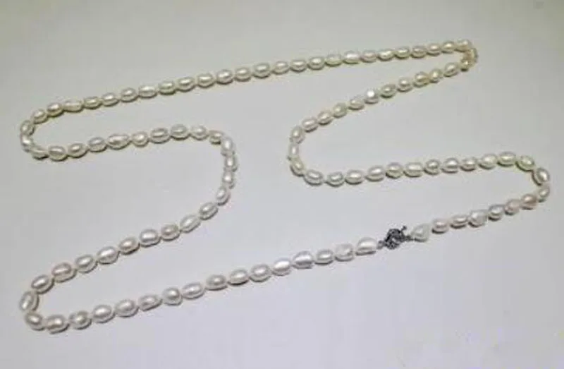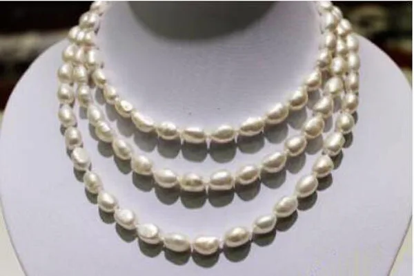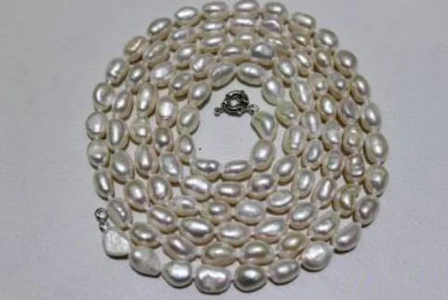 long freshwater pearl necklace white Baroque 9x11mm 120cm metal clasp fashion jewelry