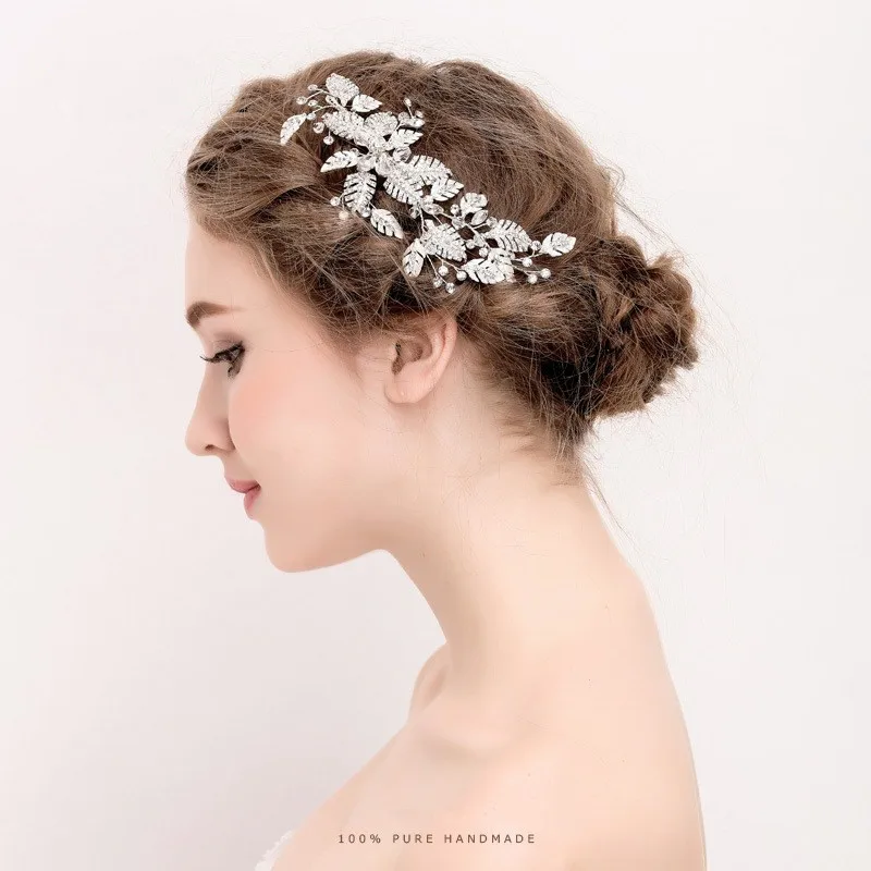 2019 New Luxurious Silver Leaf Crystal Bridal Hairpin Rhinestone Headband Headpiece Hair Ornaments