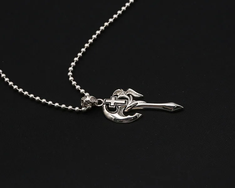 HIGH QUALITY Solid Silver 925 Gothic Ax Cross Pendant For Necklace Men Punk Thai Silver 925 Sterling Silver Jewe