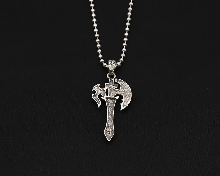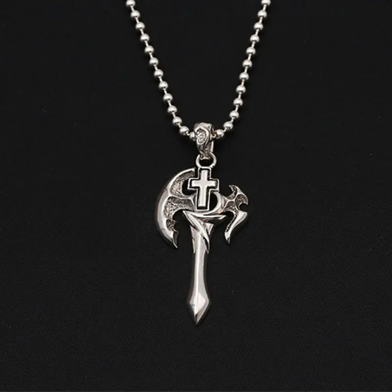 Solid Silver 925 Gothic Ax Cross Pendant For Necklace Men Punk Thai Silver 925 Sterling Silver Jewe