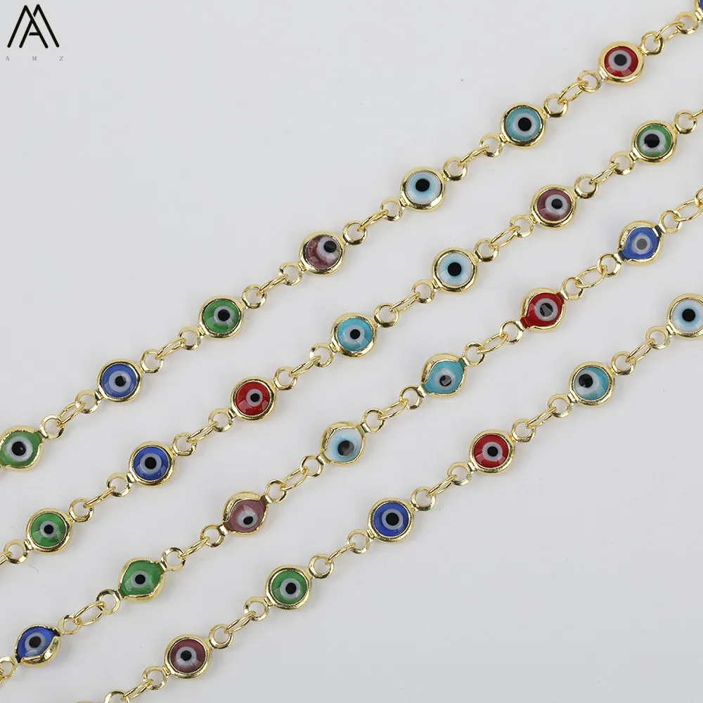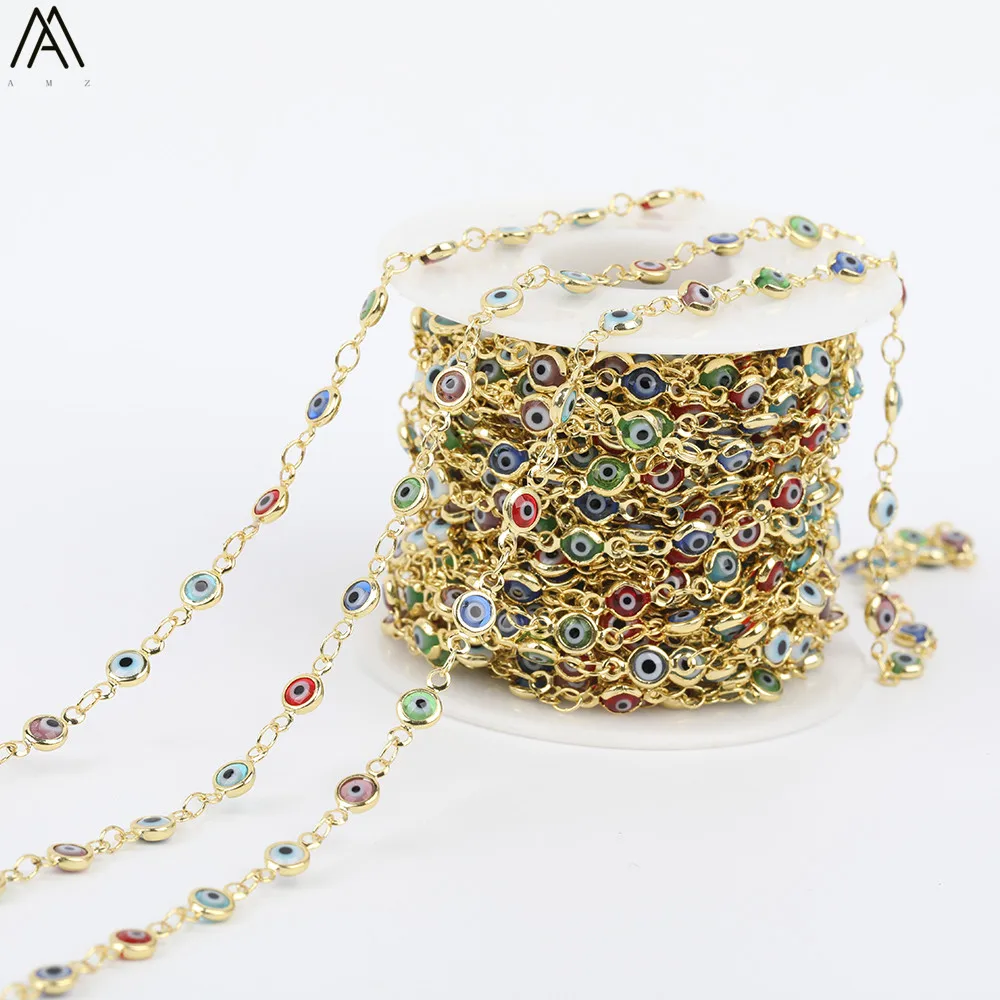 HIGH QUALITY 5meter 5mm Coloful Evil Eyes Beads Rosary ChainsFlat Round Enamel Beads Bracelet Chains Jewelry Fin