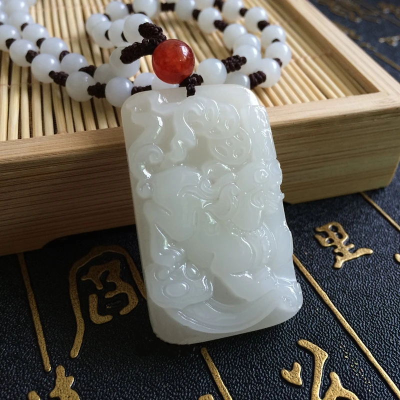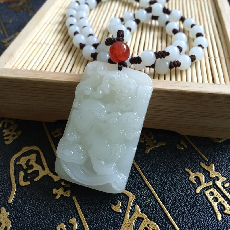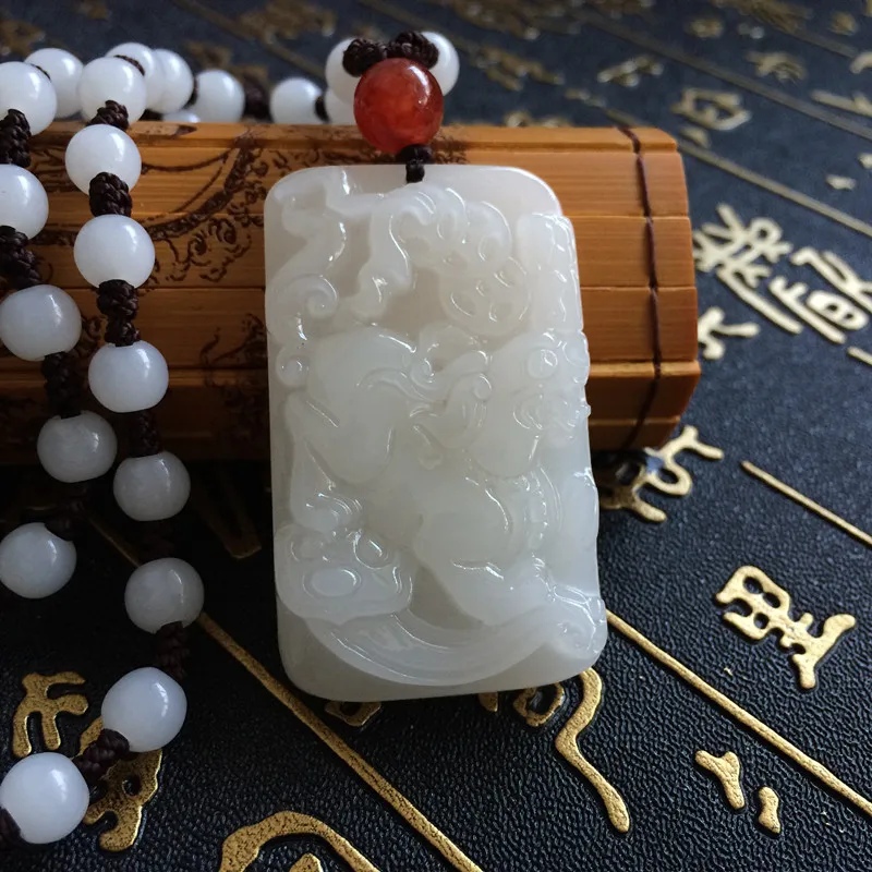 HOT SALE Natural White Hetian Suet Jades Pendant 3D Handmade Carved PIXIU Women Men's Gift Nephrite Jewelry