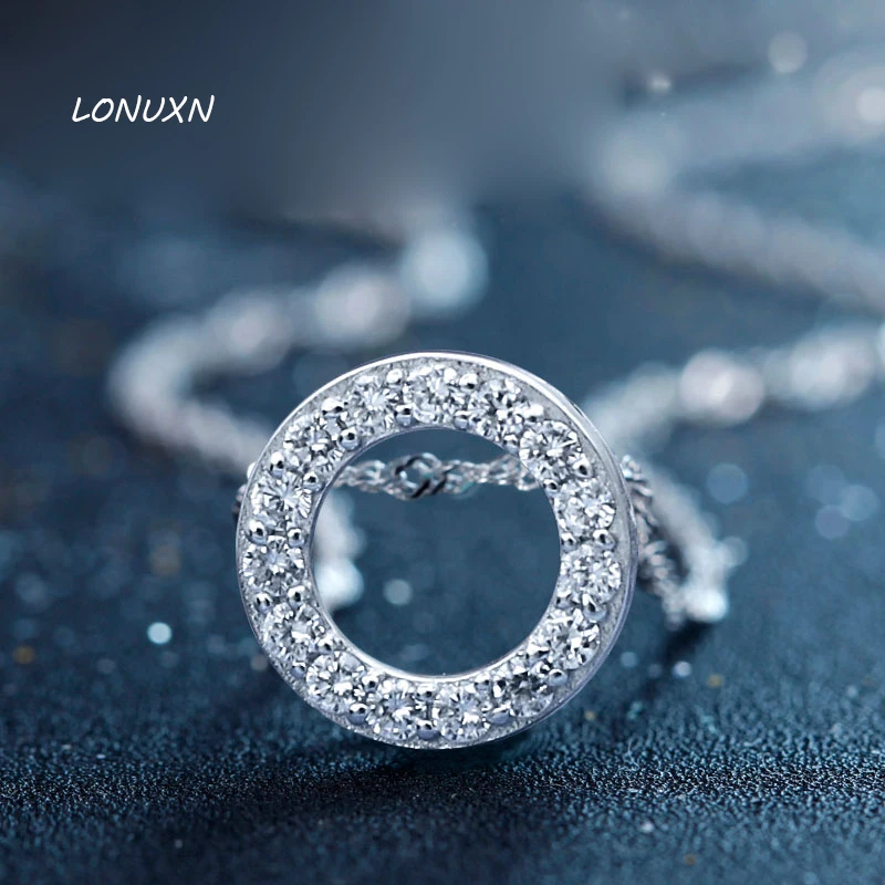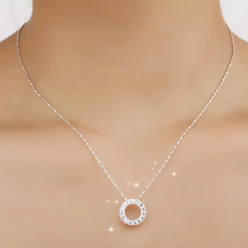 1.2cm 925 Sterling silver Pendant simple female Korean fashion white crystal women jewelry circle h