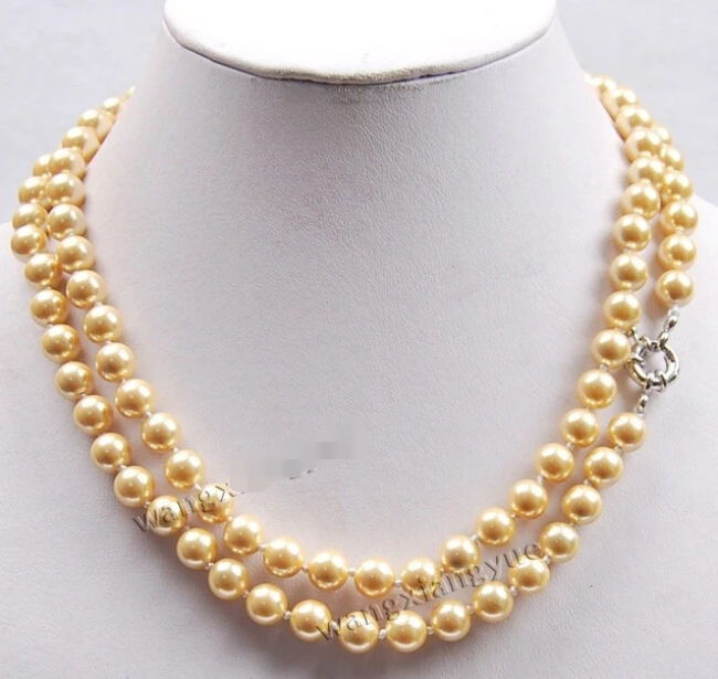 REVIEW TOP SELLER longer 8MM Golden South Sea Shell Pearl Necklace Factory Wholesale price 36inch real Women Fine for