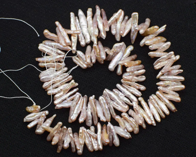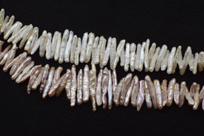 ORIGINAL loose beads freshwater pearl white/purple toothpick 14-20mm beads for making jewelry necklace 14inc