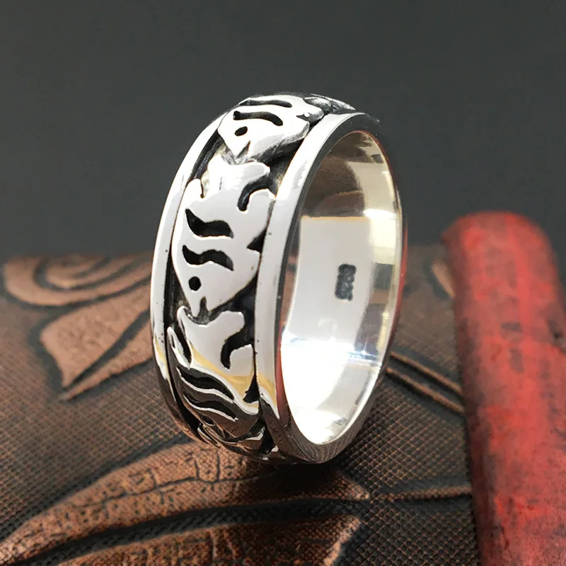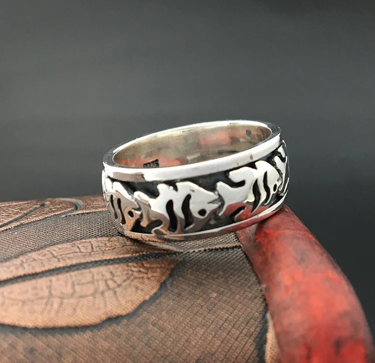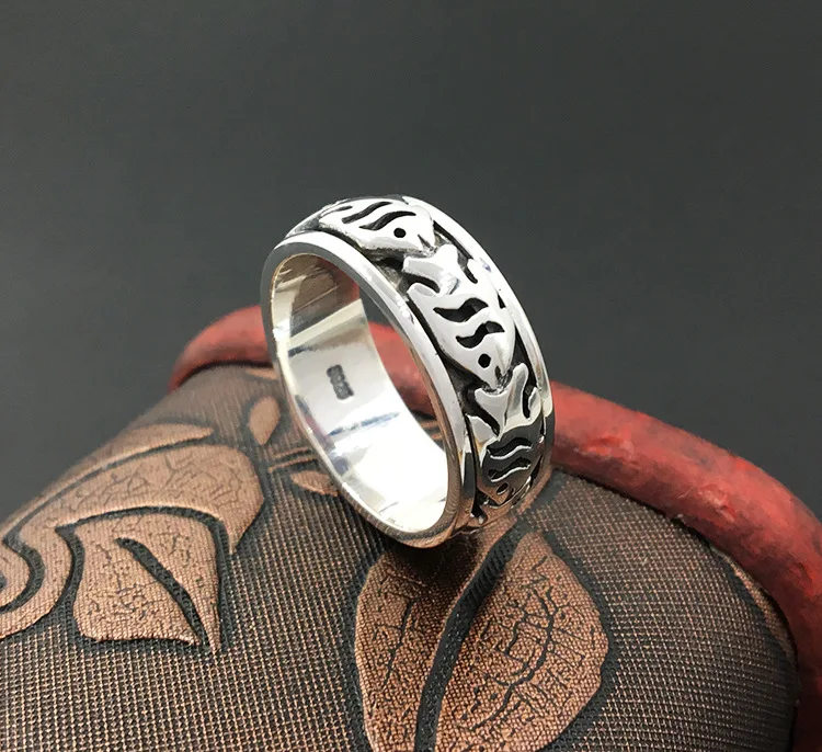 S925 Sterling Silver Jewelry Fashion Retro Thai Silver Men And Women Models Creative Row Of Fish Ri
