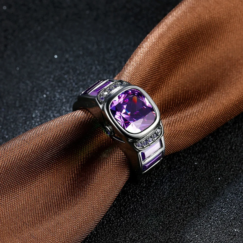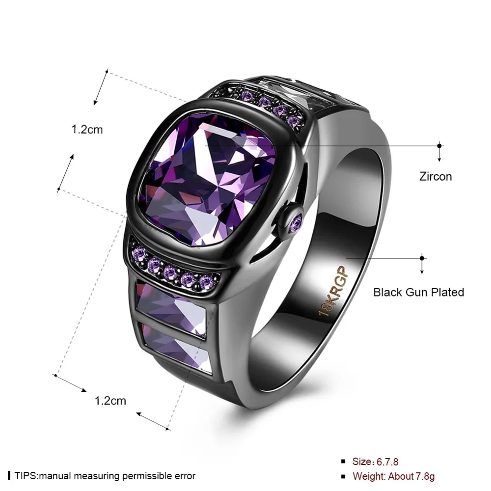 IOGOU Jewelry Rings Cushion Cut Black Gun Plated Purple Stone Wedding Bands Engagement Anniversary
