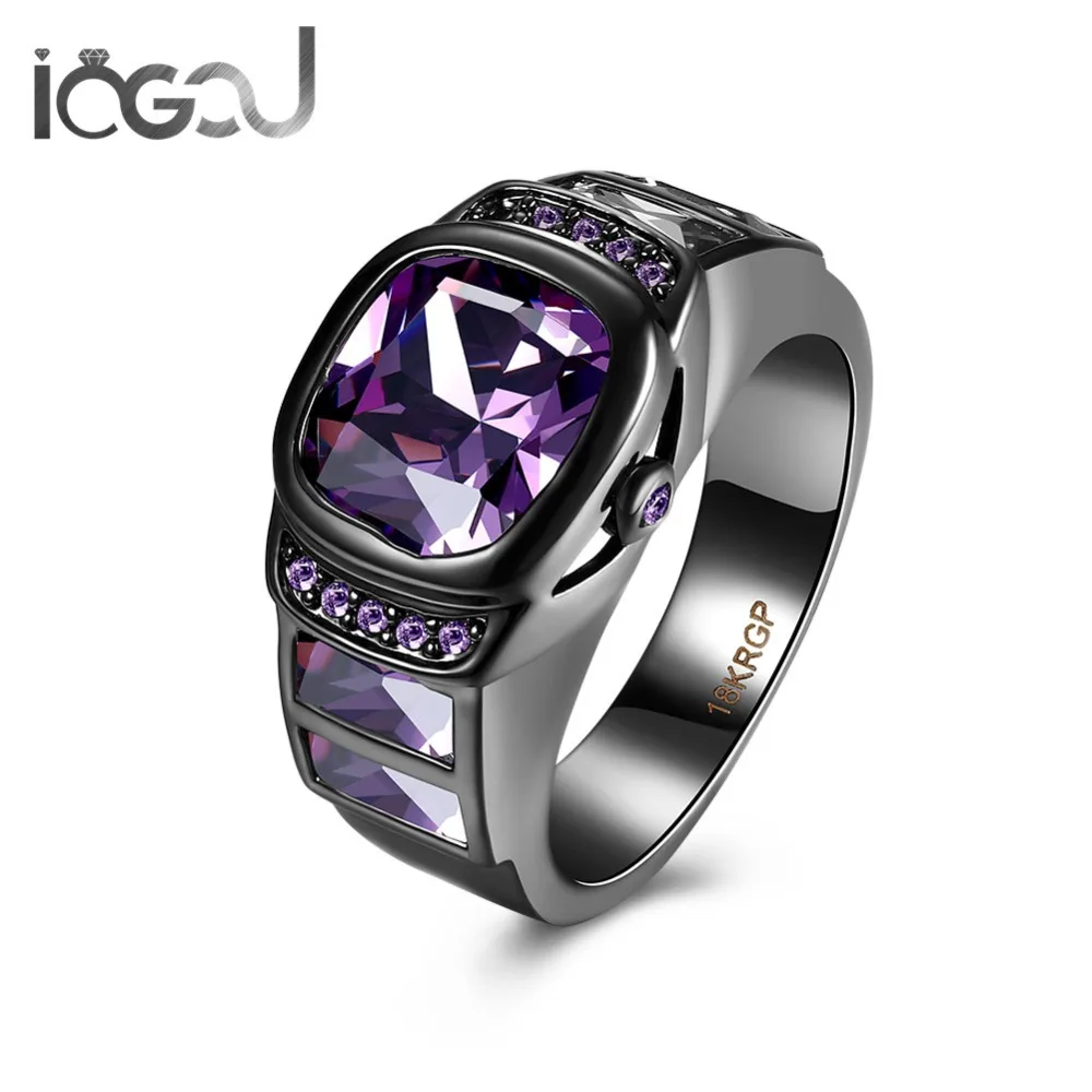 REVIEW TOP SELLER IOGOU Jewelry Rings Cushion Cut Black Gun Plated Purple Stone Wedding Bands Engagement Anniversary